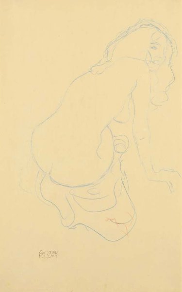 Gustav Klimt Kauernder Akt nach rechts mit langen Haaren Oil Painting Reproduction